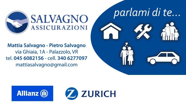 In maggio 2010, io sottoscritto Mattia Salvagno forte di una consolidata e pluriennale esperienza nel settore assicurativo e con l’esigenza di darmi una struttura operativa, visibilità e manifestata esigenza da parte della ns. gentile clientela, inauguro a Palazzolo di Sona la “Salvagno Assicurazioni”.