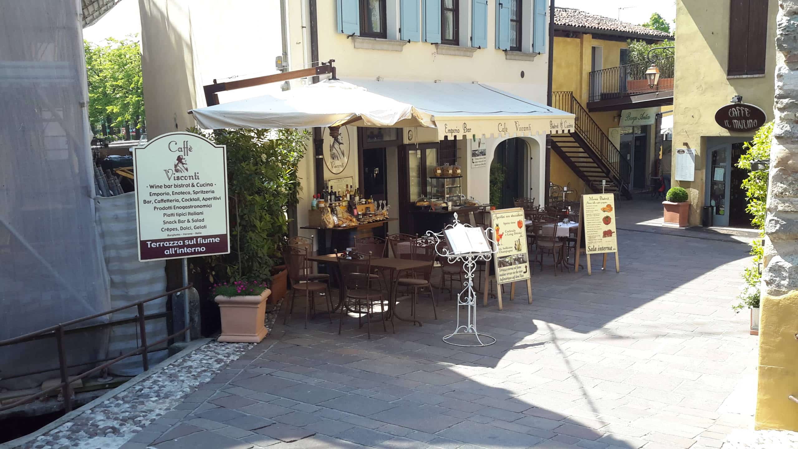 Nel borgo più bello d’Italia, Borghetto di Valeggio sul Mincio, si trova il Wine Bar Bistrot & Cucina Caffe Visconti, che porta il cognome della famiglia nobile di Milano che fece costruire il ponte visconteo nel XII secolo.