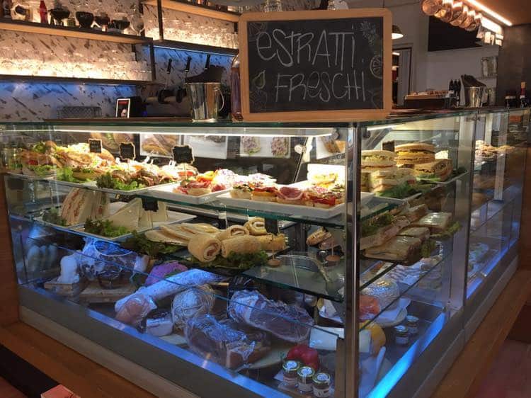 Caffetteria, pasticceria, rosticceria di tradizione napoletana. Formaggi e salumi da tutta Italia ed Europa accompagnati da una cucina tipica per il pranzo e più ricercata per la cena. Sfiziosità come il tartufo nero della Lessinia o la fonduta di formaggi Parigina, il tutto accompagnato da una bella selezione di vini da scegliere da circa 200 etichette.