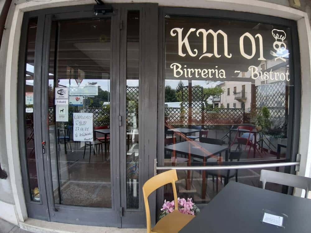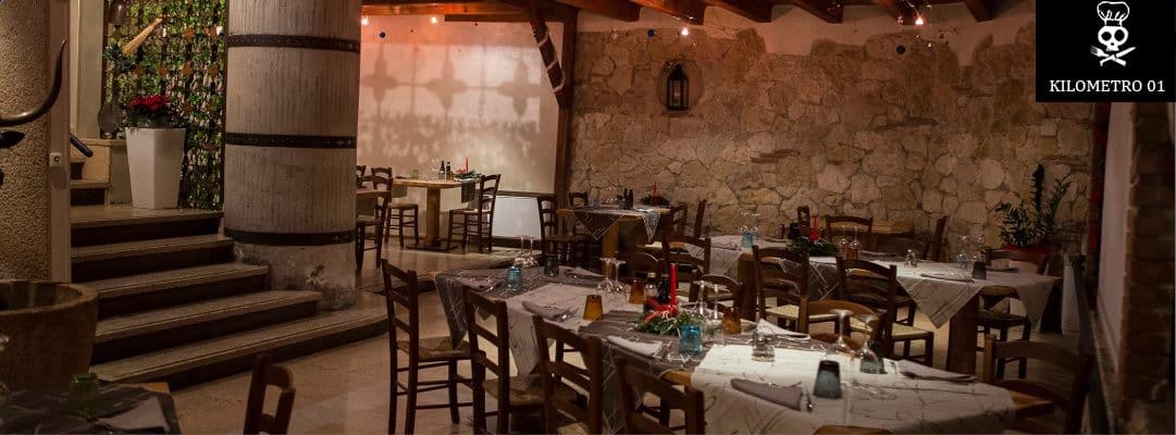 Il nome del locale “Kilometro 01” trae ispirazione dal titolo di una canzone omonima che piace al Simo e dal fatto che lui stesso si impegni a reperire le materie prime per i suoi piatti preferibilmente dalla zona e quindi di produzione locale.