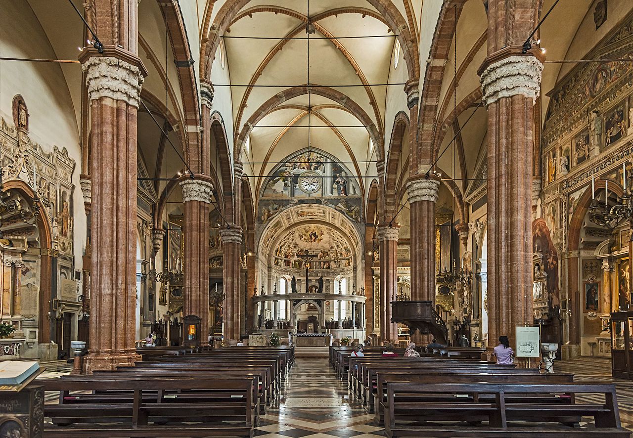 Tra le opere da ricordare all’interno il Tornacoro di Sanmicheli nella zona absidale e i dipinti di Liberale da Verona, Giolfino, ma soprattutto l’”Assunta” di Tiziano (1530).