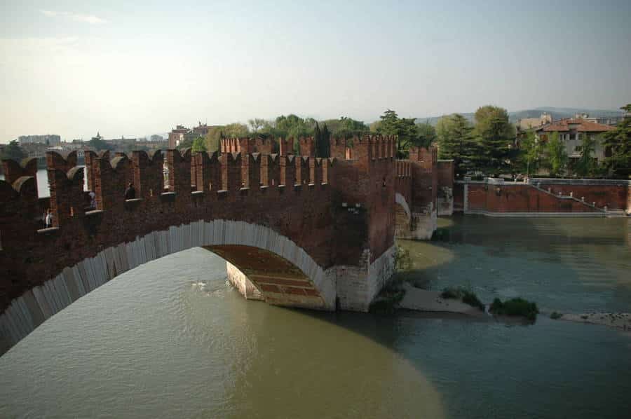 Il ponte scaligero, portato a termine nell’arco di tre anni, fra il 1354-56, altra funzione non aveva se non quella di assicurare una via di fuga dal Castello verso la campagna e la Germania, dove regnava il genero di Cangrande II, Ludovico il Bavaro.