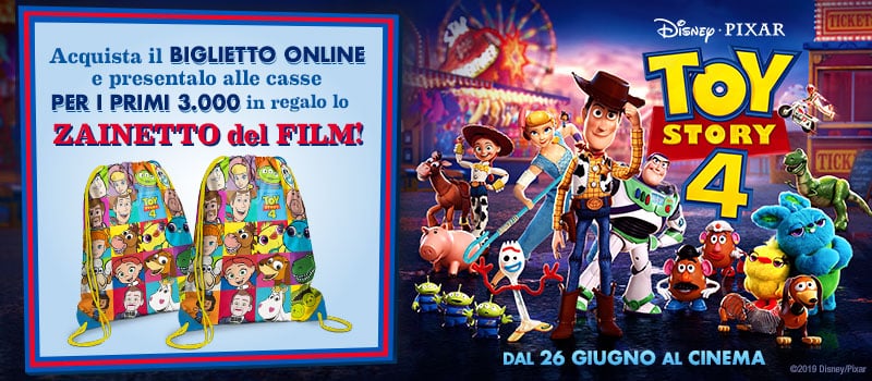 Acquista il biglietto del film “Toys Story 4” e ricevi lo zainetto del film