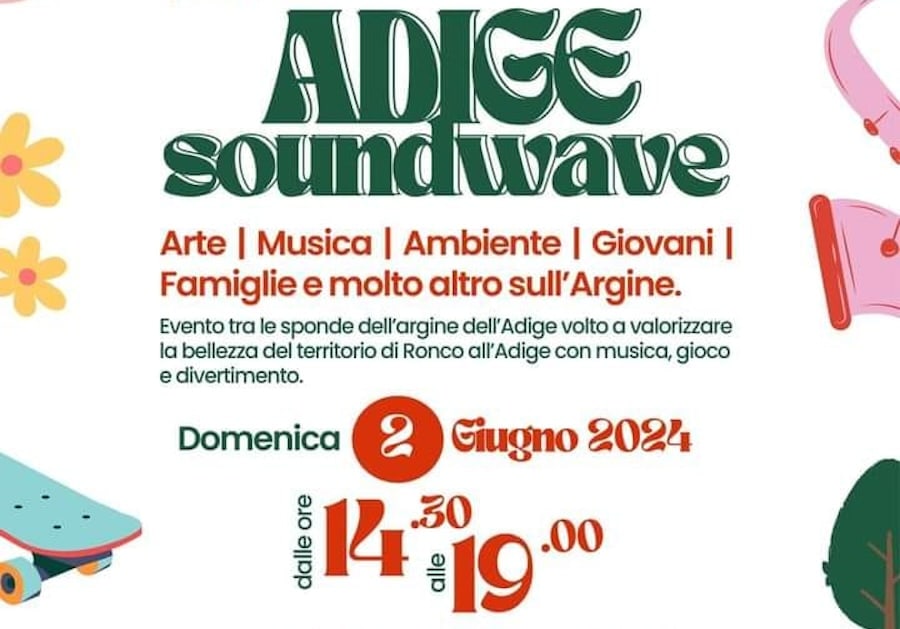 L’Amministrazione Comunale di Ronco all’Adige è felice di annunciare che la Consulta Giovanile del Comune di Ronco all’Adige, in collaborazione con la Proloco e la Rete Intercomunale per le Politiche giovanili, organizza per Domenica 2 Giugno dalle 14.30 alle 19.00, il secondo appuntamento dell’Adige Soundwave, il Festival della consulta Giovani del comune, un evento inedito che si terrà sopra l’argine ronchesano, lungo la pista ciclopedonale sulle rive dell’Adige, da Via del Popolo fino alla Piazza di Scardevara (o viceversa).