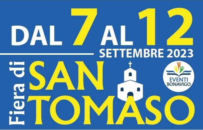 Ritorna dal 7 al 12 settembre 2023 l‘Antica Fiera di San Tomaso presso l’argine dell’Adige vicino il Santuario di San Tomaso di Orti di Bonavigo con stand gastronomici, parco divertimenti, orchestra e martedì 12 gran finale con estrazione tombola di 1500€.