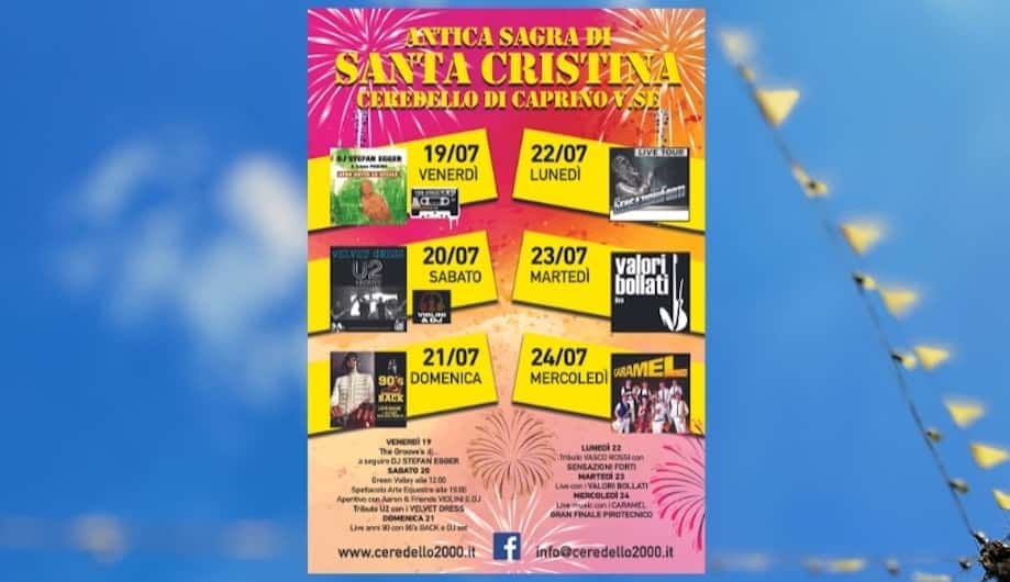 L’Antica Sagra di Santa Cristina torna a Ceredello, frazione di Caprino Veronese, nell’entroterra del Lago di Garda veronese, dal 24 al 28 luglio 2025.