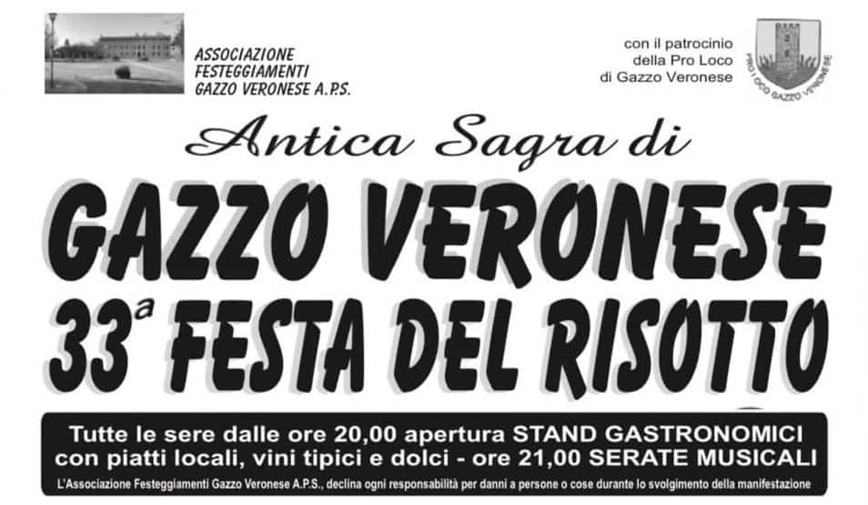 Dal 23 al 26 maggio e dal 30 maggio al 2 giugno 2025 torna a Gazzo Veronese uno degli appuntamenti più amati della tradizione locale: la Festa del Risotto.