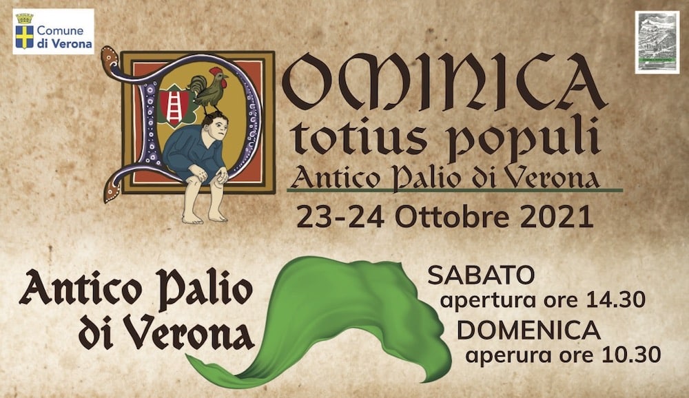 Un weekend ricco di eventi, rievocazioni medievali, dimostrazioni d’arme, interpretazioni teatrali e visite guidate. Le vie e le piazze del centro cittadino tornano ad ospitare l’antico Palio di Verona, che con i suoi oltre 800 anni di storia e tradizione rappresenta oggi la corsa organizzata più antica del mondo. Due giornate di eventi gratuiti, in programma sabato 23 e domenica 24 ottobre, in cui saranno proposte, oltre all’antica corsa del Palio, iniziative tradizionali diverse. È la “Dominica Totius Populi”, un giorno di festa durante il quale la città, nel Medioevo, ammetteva l’ingresso ai forestieri per un momento di scambio e condivisione.