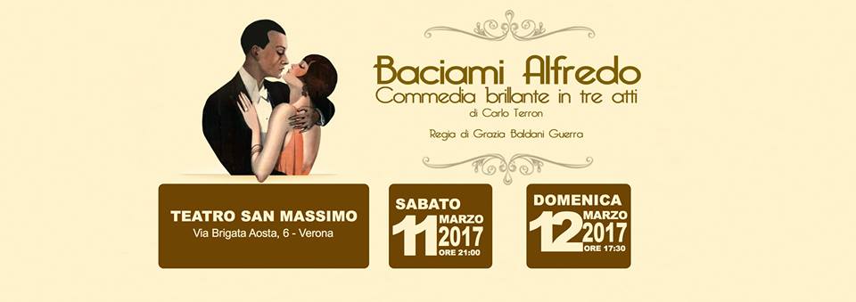L altra compagnia teatrale di Verona presenta al Cinema Teatro San Massimo Baciami Alfredo. Commedia brillante in tre atti di Carlo Terron, sabato 11 marzo alle 21.00 e domenica 12 marzo alle 17.30