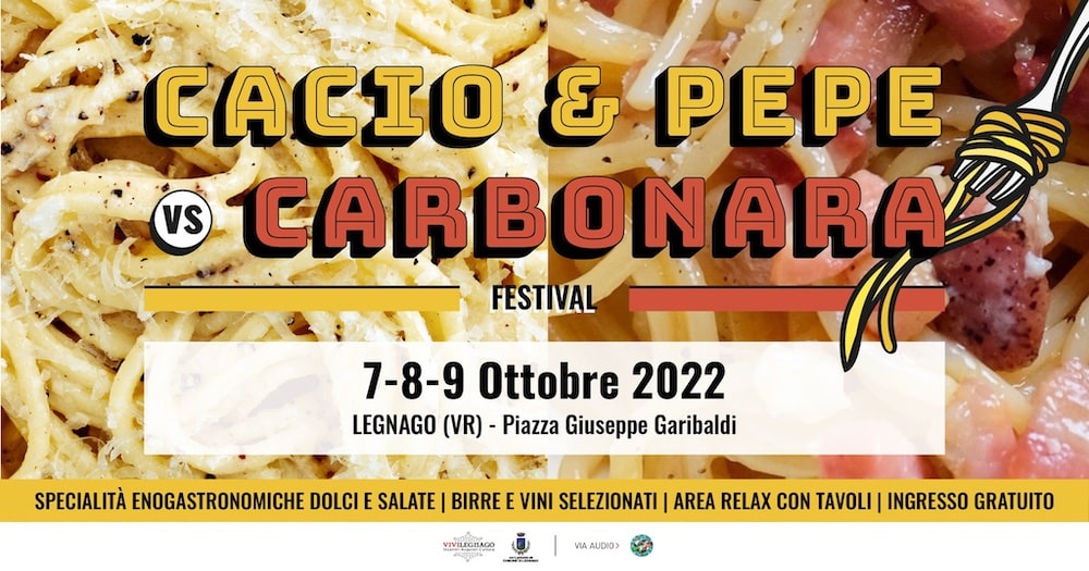 Tornano gli appuntamenti enogastronomici a Legnago: in scena dal 7 al 9 Ottobre 2022 la 16° edizione del “Cacio & Pepe VS Carbonara Festival”, il grande format itinerante dedicato alla Cucina Romana, per un lungo weekend di gusto e divertimento da non perdere nella centrale Piazza Garibaldi di Legnago.