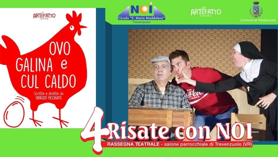 Terzo appuntamento con la rassegna “4 Risate con NOI“. ArteFatto Teatro vi aspetta venerdì 7 febbraio alle 20.45 con la commedia comica “Ovo, galina e cul caldo”.