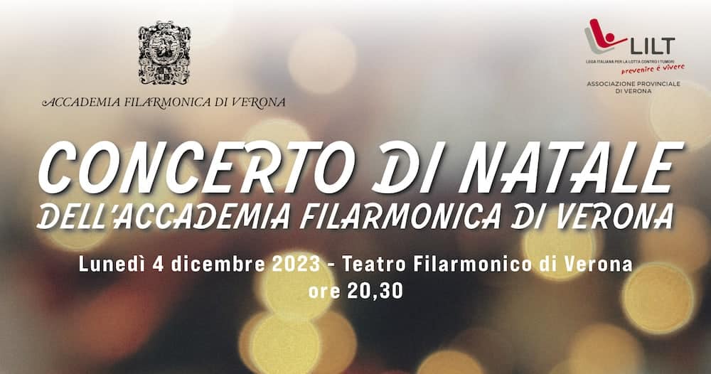Lunedì 4 dicembre 2023 alle ore 20.30 è in programma il concerto di Natale dell’Accademia Filarmonica di Verona a sostegno della Lega italiana per la Lotta contro i Tumori – L.I.L.T.
