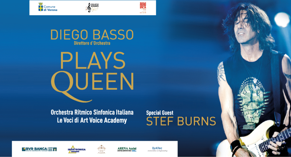 Venerdì 8 settembre 2023, alle ore 21.30, al Teatro Romano di Verona andrà in scena il maestro Diego Basso e l’Orchestra Ritmico Sinfonica Italiana per un concerto dal titolo “Diego Basso Plays Queen“, in omaggio alla mitica band di Freddie Mercury. Special guest della serata sarà Stef Burns, chitarrista di Vasco Rossi.