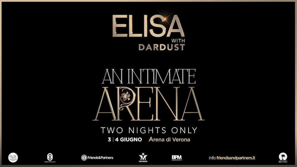 A grande richiesta, dopo il successo del loro tour nei teatri sold out in ogni tappa, Elisa e Dardust torneranno insieme per due concerti evento il 3 e 4 giugno 2023 sul palco dell’Arena di Verona. L’evento intitolato “An Intimate Arena – Two nights only”, permetterà ai fan di rivivere la magia della loro collaborazione.