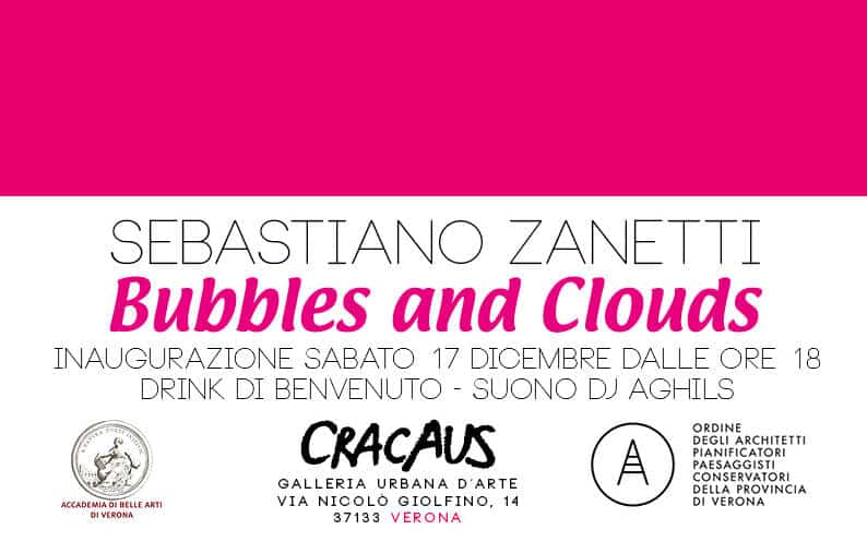 Il 17 dicembre 2022 inaugura, presso gli spazi della Galleria d’arte “Cracaus”, l’esposizione “Bubbles and Clouds”, personale dell’artista Sebastiano Zanetti, patrocinata da “Accademia di Belle Arti di Verona” e Ordine degli Architetti PPC della Provincia di Verona.