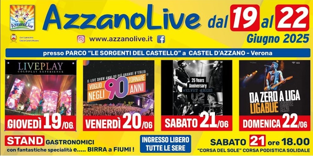 Tutte le info sul sito www.azzanolive.it e sulla pagina facebook @azzanolive.