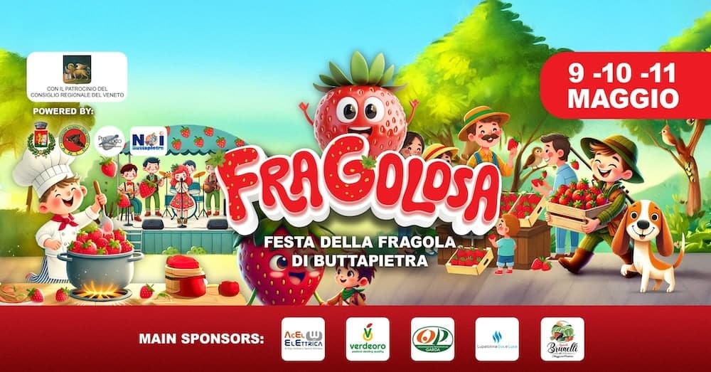 Da Venerdì 9 a Domenica 11 Maggio è in programma la Festa della Fragola a Buttapietra, tre giorni dedicati alla cultura enogastronomica, storia, cibo e divertimento, dove i più grandi produttori del veronese esporranno le proprie fragole e una giuria esperta decreterà il vincitore aggiudicando il titolo di “Miglior Fragolosa 2025”.
