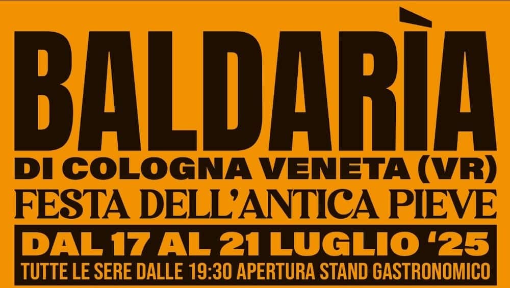 Da giovedì 17 a lunedì 21 luglio a Baldarìa di Cologna Veneta torna la Festa dell’antica Pieve (già della Trebbiatura), giunta ormai alla sua 31a edizione, voluta per ricordare gli usi, i costumi, i piatti e le tradizioni del mondo contadino veneto.
