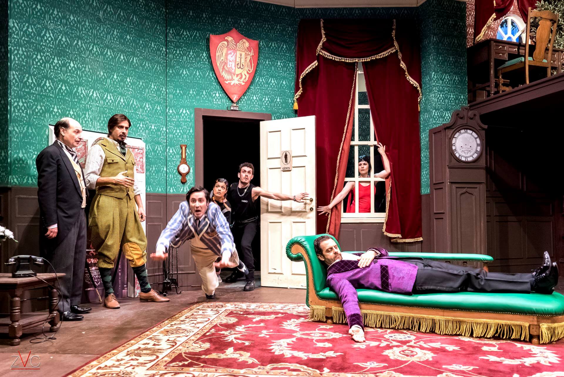 “Che Disastro di Commedia” racconta la storia di una compagnia teatrale amatoriale che, dopo aver ereditato improvvisamente un’ingente somma di denaro, tenta di produrre un ambizioso spettacolo che ruota intorno a un misterioso omicidio perpetrato negli anni ’20, nel West End. La commedia è un susseguirsi di errori, strafalcioni, momenti imbarazzanti e disastri provocati dagli attori stessi. La produzione si rivela una catastrofe e gli attori cominciano ad accusare la pressione, andando nel panico. “Che Disastro Di Commedia” evidenzia tutte le paure e gli errori che un attore sul palco non vorrebbe e dovrebbe mai commettere.