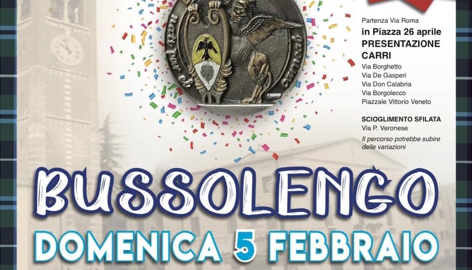 Domenica 5 febbraio torna il Gran Carnevale di Bussolengo, appuntamento che si tramanda da generazioni e porta in paese lo spirito di una festa che è parte della storia e del territorio veronese. La manifestazione è organizzata dall’associazione culturale Nati par el Carneal, con il patrocinio del Comune di Bussolengo e la collaborazione della Pro Loco Comune di Bussolengo, dell’Avis Bussolengo e del gruppo Scottish Birati.