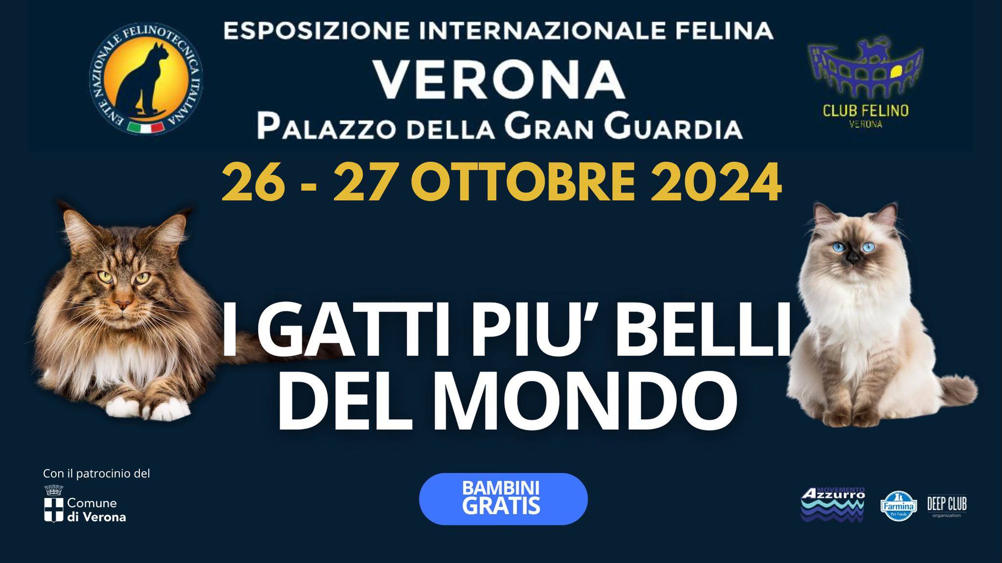 L’esposizione Internazionale Felina, “I gatti più belli del mondo” tornano a Verona più belli che mai per la gioia di grandi e piccini. Arriveranno da tutta Italia, preparati dai loro padroncini per apparire nel pieno del loro splendore e partecipare al concorso che sarà al Palazzo della Gran Guardia di Verona dal 20 al 21 settembre 2025.