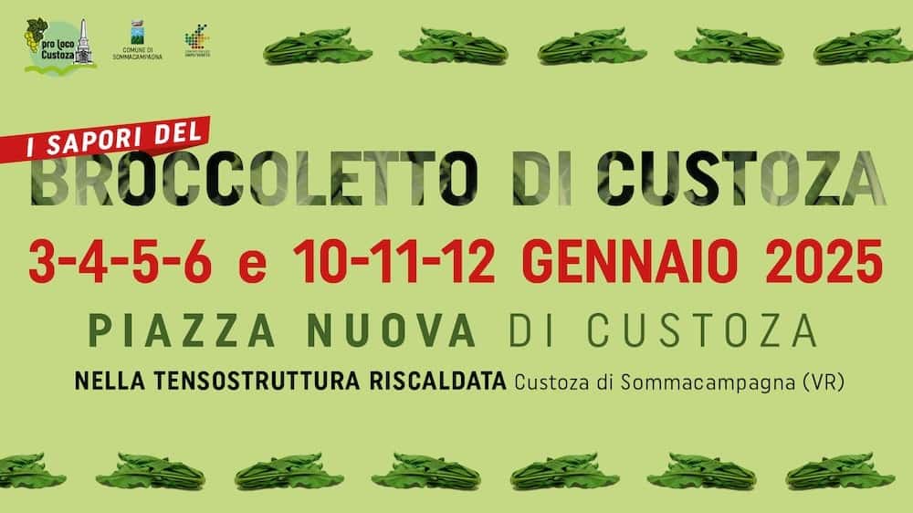 Dal 3 al 6 e dal 10 al 12 gennaio, ventitreesima edizione de Il Broccoletto di Custoza, organizzata dall’ass. produttori Broccoletto di Custoza con il patrocinio del Comune di Sommacampagna. La festa enogastronomica mette insieme i prodotti tipici della terra morenica, puntando il riflettore proprio sul broccoletto, una delle delizie di nicchia più interessanti del territorio.