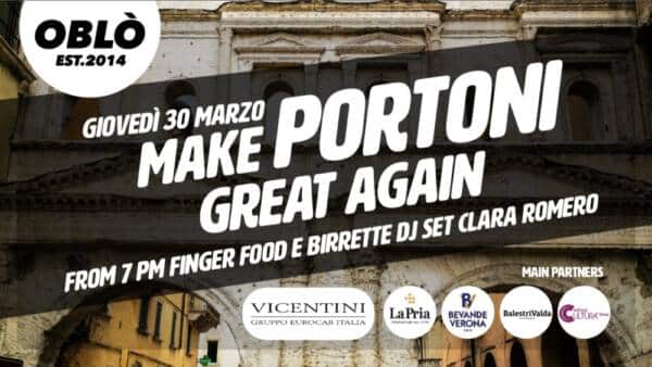 Inaugurazioni 30 Marzo 2023 Inaugurazione Oblò “Make Portoni Great Again” 19:00 / Oblò Comfort Food Questo weekend