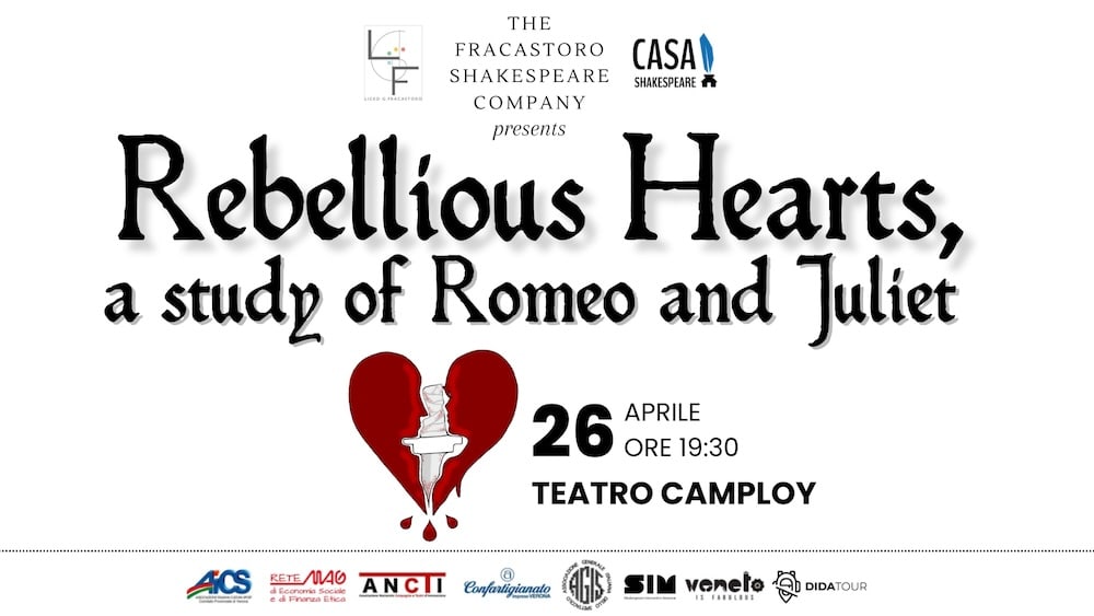 La Fracastoro Shakespeare Company è lieta di annunciare il debutto dell’innovativo spettacolo teatrale “Rebellious Hearts”, che offrirà una nuova interpretazione dell’iconica tragedia “Romeo e Giulietta”. La prima andrà in scena il 26 aprile alle ore 19:30 presso il Teatro Camploy di Verona.