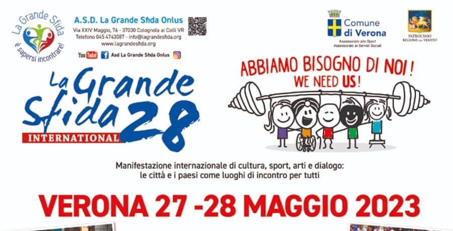 Sabato 27 e domenica 28 maggio nelle piazze principali di Verona torna “La Grande Sfida International“, l’evento che incontra ragazzi diversamente abili e che mette insieme integrazione, inclusione e accessibilità attraverso lo sport, le arti, il gioco e il dialogo.
