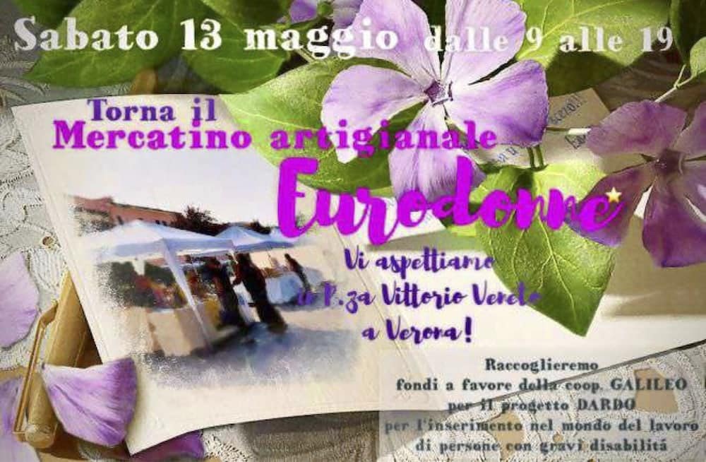 L’Associazione Eurodonne Italia Veneto Aps, per raccogliere fondi a favore della Coop. Galileo per il progetto “Dardo” ritorna con il Mercatino artigianale in piazza Vittorio Veneto dalle 9 alle 19.