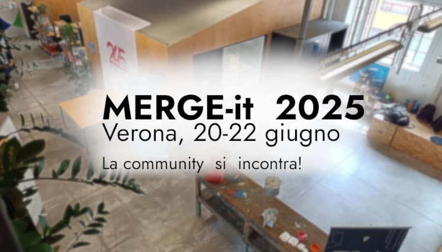 La quarta edizione della conferenza MERGE-it, l’incontro biennale delle comunità italiane per le libertà digitali, che riunisce associazioni, gruppi informali, aziende, professionisti e pubbliche amministrazioni, torna a Verona dal 20 al 22 giugno 2025, nella sede di 311 Verona, presso la Fondazione Edulife.
