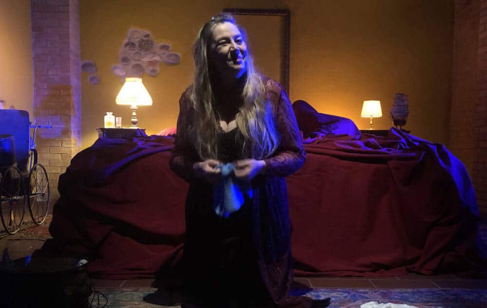 Nell’allestimento lo spettatore viene fatto entrare nell’intimità della camera da letto di Molly.