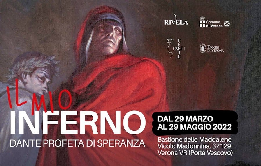 Martedì 29 marzo ore 20.45 presso il Teatro Camploy (in via Cantarane 32, Verona): serata spetta-colo ”Il mio inferno. Retroscena da una mostra”. Alla presenza del curatore Franco Nembrini, di un gruppo di giovani studenti-guide della mostra e il robot umanoide NAO. Conduce la serata Nicolò Brenzoni. Ingresso libero con obbligo di prenotazione on line. Accesso consentito con Green Pass rafforzato e mascherina FFP2. Info e prenotazioni sul sito: www.danteprofetadisperanza.it.
