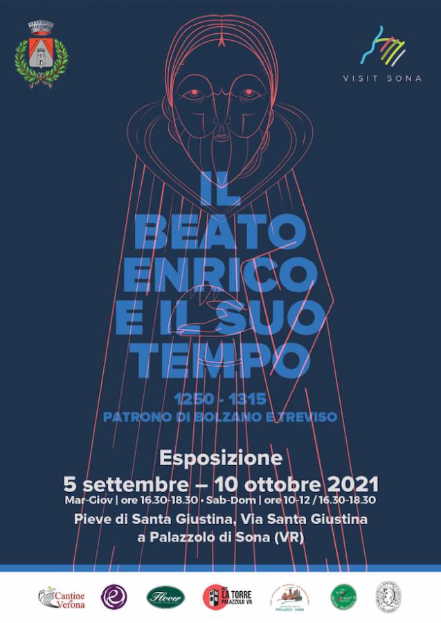 Dal 5 settembre, il Comune di Sona aprirà al pubblico la mostra dedicata al Beato Enrico, nella straordinaria cornice della Pieve romanica di Santa Giustina a Palazzolo di Sona. Uomo del Medioevo, raffigurato all’interno del ciclo frescale del Trecento accanto ad altri santi attribuibili al Maestro Cicogna, il Beato Enrico viene qui presentato in un crescendo di testimonianze e figure ricche di particolari che accompagnano reperti romani, longobardi e medioevali ben conservati. Orme nella storia di un mondo antico che si meravigliava per Dante, Giotto e San Francesco, e in cui visse anche Enrico che i visitatori potranno conoscere immersi nelle musiche inedite e nella presentazione della mostra curata dall’Archeologo Gino Bombonato di Bolzano.