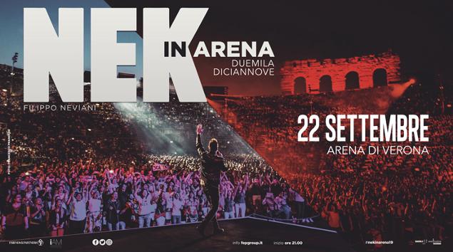 Dopo l’esperienza insieme a Max Pezzali e Francesco Renga, Nek nel 2019 torna a camminare da solo all’Arena di Verona che torna ad ospitarlo dopo l’ultimo concerto del 2017.