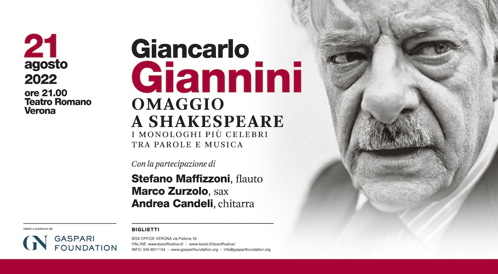 Domenica 21 agosto 2022 alle ore 21.00 i più celebri monologhi di Shakespeare prenderanno vita grazie all’inimitabile voce di Giancarlo Giannini. Al suo fianco tre musicisti si alterneranno per creare suggestioni sonore affini ai testi, in un continuo intreccio di musica e parole.