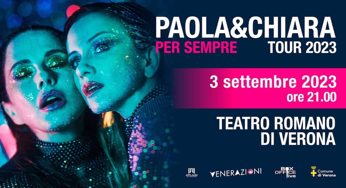 Domenica 3 settembre 2023 Paola e Chiara saliranno sul palco del Teatro Romano, per proporre oltre ai loro intramontabili successi riempi pista, anche i brani che hanno contrassegnato le tappe fondamentali della loro carriera.