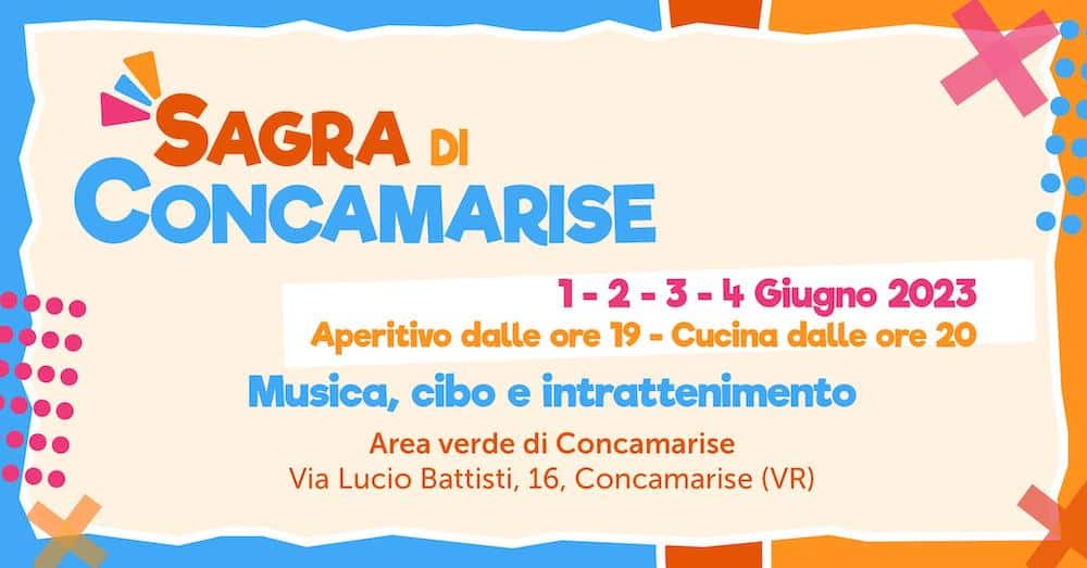 Da Venerdì 30 maggio a Lunedì 2 giugno l’Associazione Pro Loco di Concamarise organizza la Sagra di Concamarise presso l’Area Verde. Aperitivo in giardino tutti i giorni dalle ore 17:30 & DJ Set con DML Events.