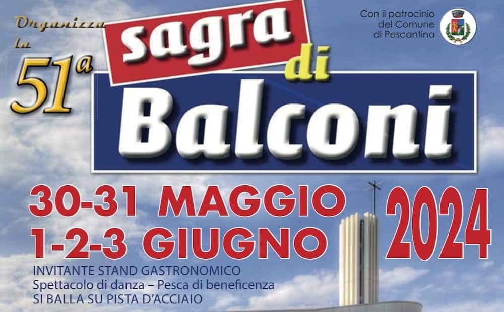 II Comitato Sagra in collaborazione con i Gruppi Parrocchiali organizza la 52esima edizione della “Sagra di Balconi” dal 29 Maggio al 3 Giugno 2025.