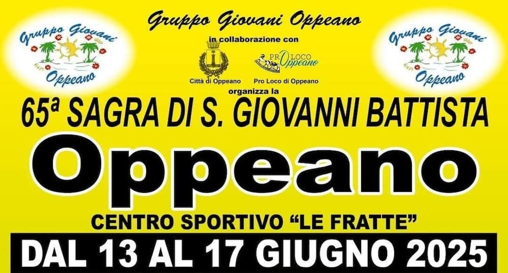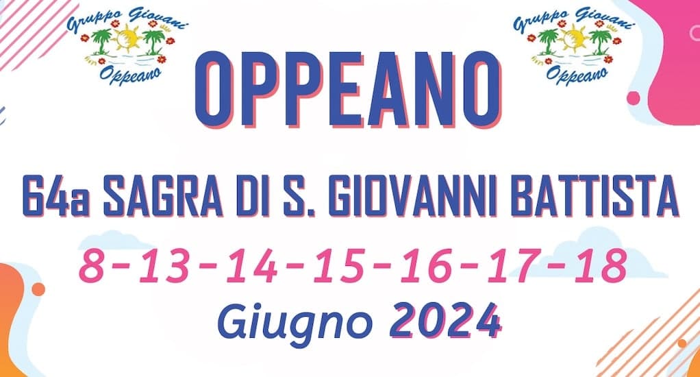 Il Gruppo Giovani di Oppeano, col supporto di Comune e Pro Loco, organizza anche quest’anno la Sagra di San Giovanni Battista, arrivata alla 65a edizione.