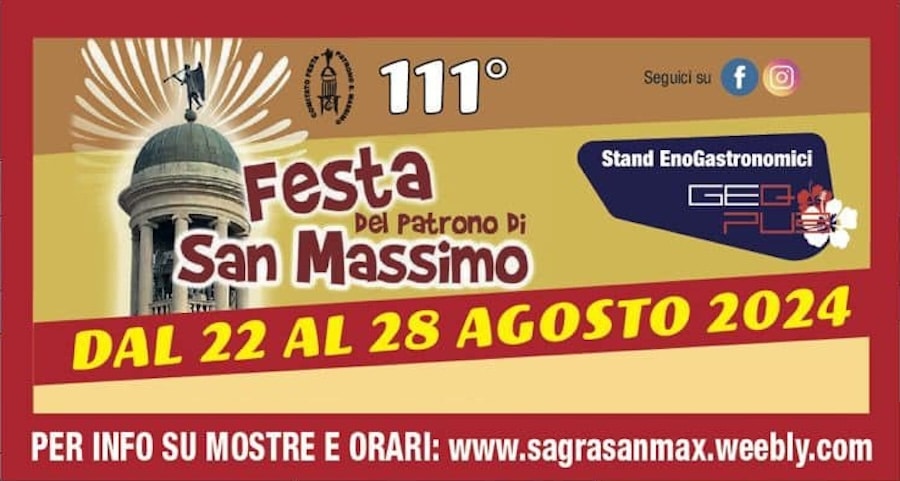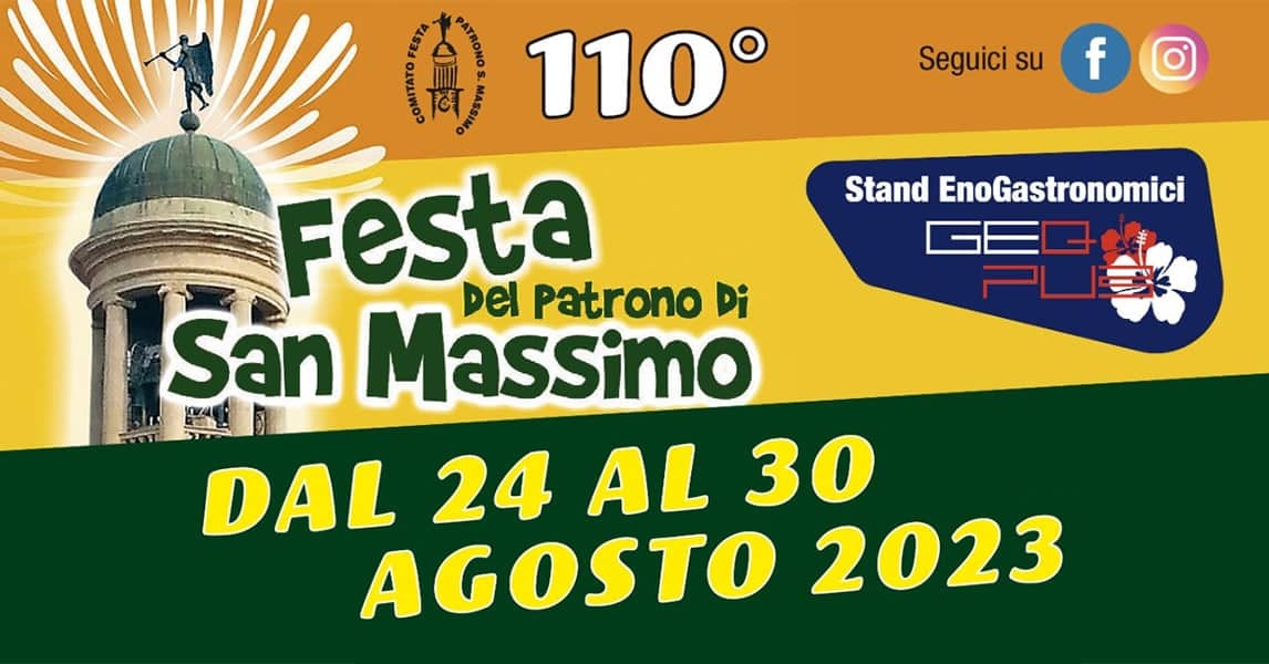 Da giovedì 28 a Mercoledì 3 settembre 2025 si tiene la Festa del Patrono a San Massimo con musica, stand enogastronomici, pesca di beneficenza e spettacoli. La Festa o Sagra del Patrono di S. Massimo da alcuni documenti ufficiali risale al 1913, mentre da voci paesane era presente anche già dall’800.