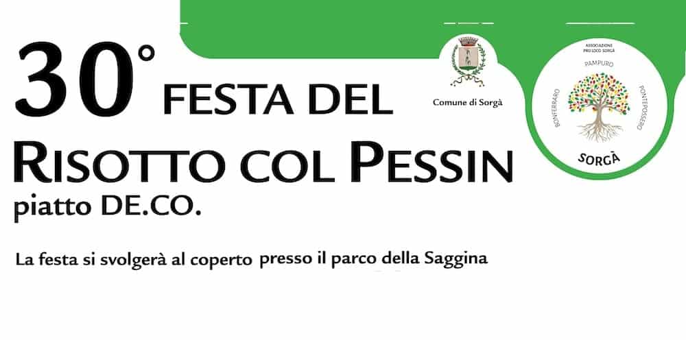 Ritorna la trentesima edizione della “Sagra del Risotto col Pessin De.Co” il 6-7-8-12-13-14-15 settembre presso il Parco della Saggina a Sorgà per celebrare la tradizione più gustosa.