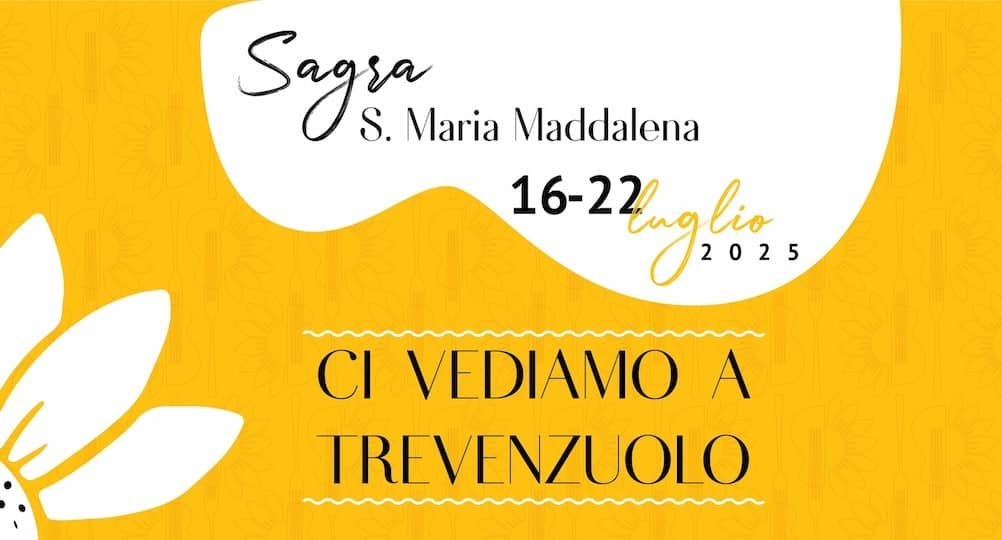 La Sagra di Santa Maria Maddalena si terrà dal 16 al 22 Luglio 2025 a Trevenzuolo (VR) presso il parco parrocchiale.