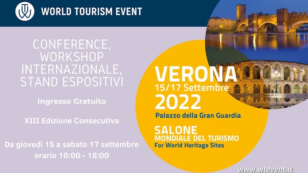 Tutti gli appuntamenti possono essere seguiti anche in streaming sul sito www.wtevent.it Il World Tourism Event ha il patrocinio del Ministero del Turismo, di Regione Veneto, dell’Associazione Beni Italiani Patrimonio Mondiale, di Enit, del Comune di Verona e della Camera di Commercio di Verona.