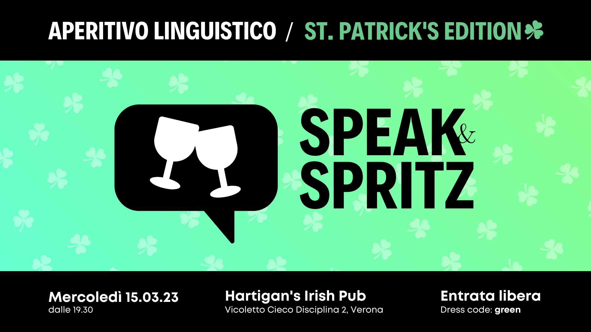 Are you ready to Speak & Spritz? L’aperitivo linguistico di Verona ritorna mercoledì 15 marzo con attività e giochi a tema irlandesi.