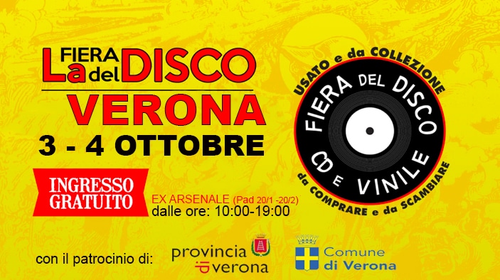 La 3° Fiera del Disco di Verona si terrà Sabato 3 Ottobre e Domenica 4 Ottobre 2020, presso l’ex Arsenale (Pad 20/1 e 20/2) e sarà aperta dalle ore 10:00 alle ore 19:00.