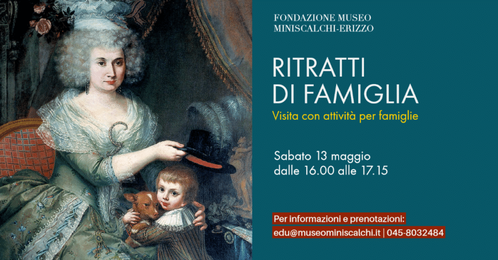 Sabato 13 maggio alle ore 16, la visita guidata sarà dedicata proprio ai preziosi dipinti del museo che ci mostrano bambini e adulti della famiglia Miniscalchi-Erizzo in posa per i ritratti ufficiali, con abbigliamento e accessori accuratamente scelti per l’occasione. Non mancano gli animali domestici, in particolare i cani, ma anche giochi e oggetti di uso quotidiano. Al termine della visita, con l’uso di materiali e tecniche diverse, si potrà creare un ritratto di famiglia personalizzato.