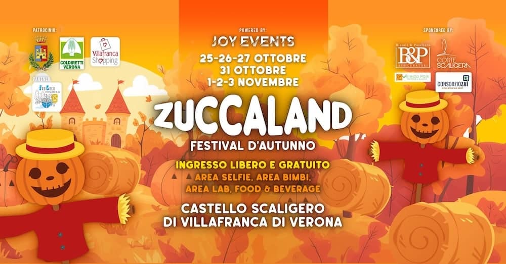 Torna al Castello Scaligero di Villafranca di Verona dal 24 al 26 Ottobre e dal 31 Ottobre al 2 Novembre la terza edizione del Festival d’Autunno “Zuccaland”, pronto a far divertire grandi e piccini. Il Castello Scaligero di Villafranca sarà la cornice perfetta del nostro evento. Ospiterà all’interno delle proprie mura un vero e proprio giardino zuccoso per potervi accogliere in tutto il clima autunnale.