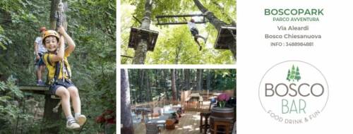 Nel cuore della montagna veronese, a Bosco Chiesanuova, in uno splendido bosco di faggi, carpini e abeti nasce il Parco Avventura Boscopark, una struttura di 6.000 metri quadrati con oltre 70 passaggi attrezzati ad altezze che variano da 1 a 15 metri.