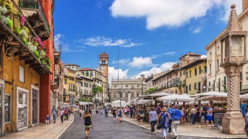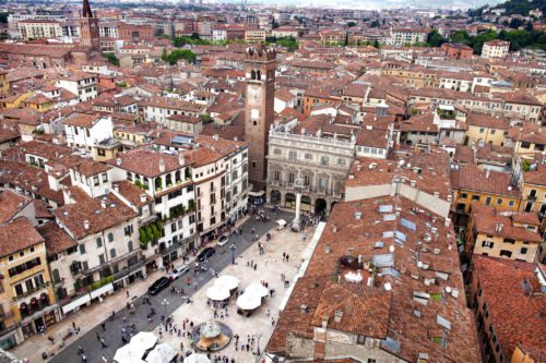 La facciata barocca del più antico Palazzo Maffei è ancora magnifica quinta scenografica alla piazza delle Erbe.